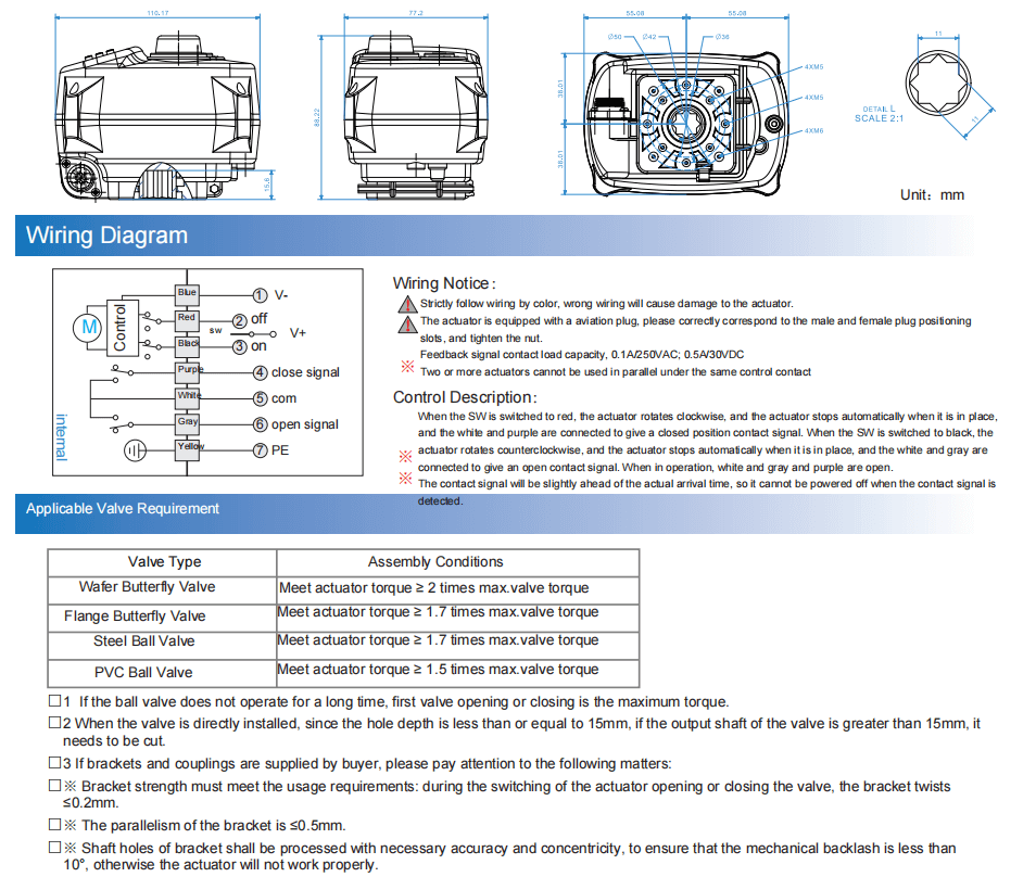 Este pequeño actuador eléctrico de material plástico se puede utilizar para accionar válvulas como válvulas de bola de 2 y 3 vías y válvulas de mariposa.