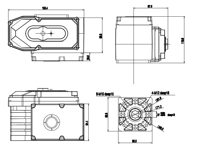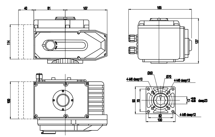 9. Aplicación: la conexión inferior cumple con el estándar ISO5211/DIN3337.El orificio cuadrado en forma de estrella es fácil para aplicaciones de vástago de válvula cuadrado lineal o de rotación de 45°;Están disponibles montaje vertical y horizontal;