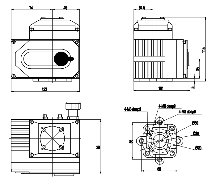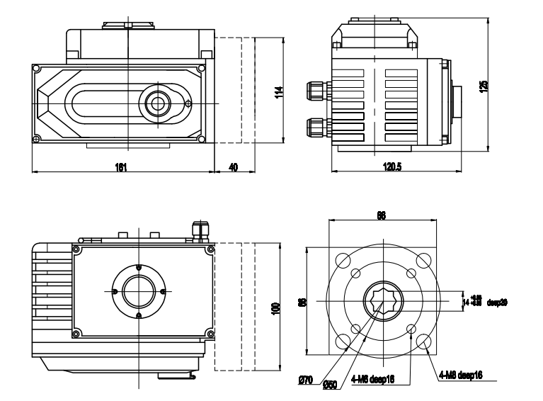 6. Interruptores de límite: interruptores de límite de posición mecánicos y electrónicos. El tornillo de parada mecánica puede ser ajustable;Los interruptores de límite electrónicos se pueden controlar mediante una leva. La posición se puede configurar de manera fácil y precisa simplemente ajustando la leva sin ninguna influencia de la manija;