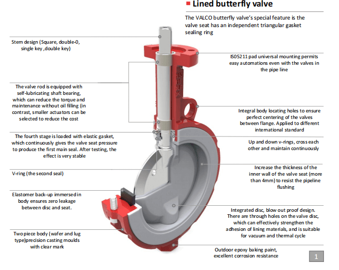 El sello de la válvula de mariposa VALCO está en el eje del vástago de la válvula.